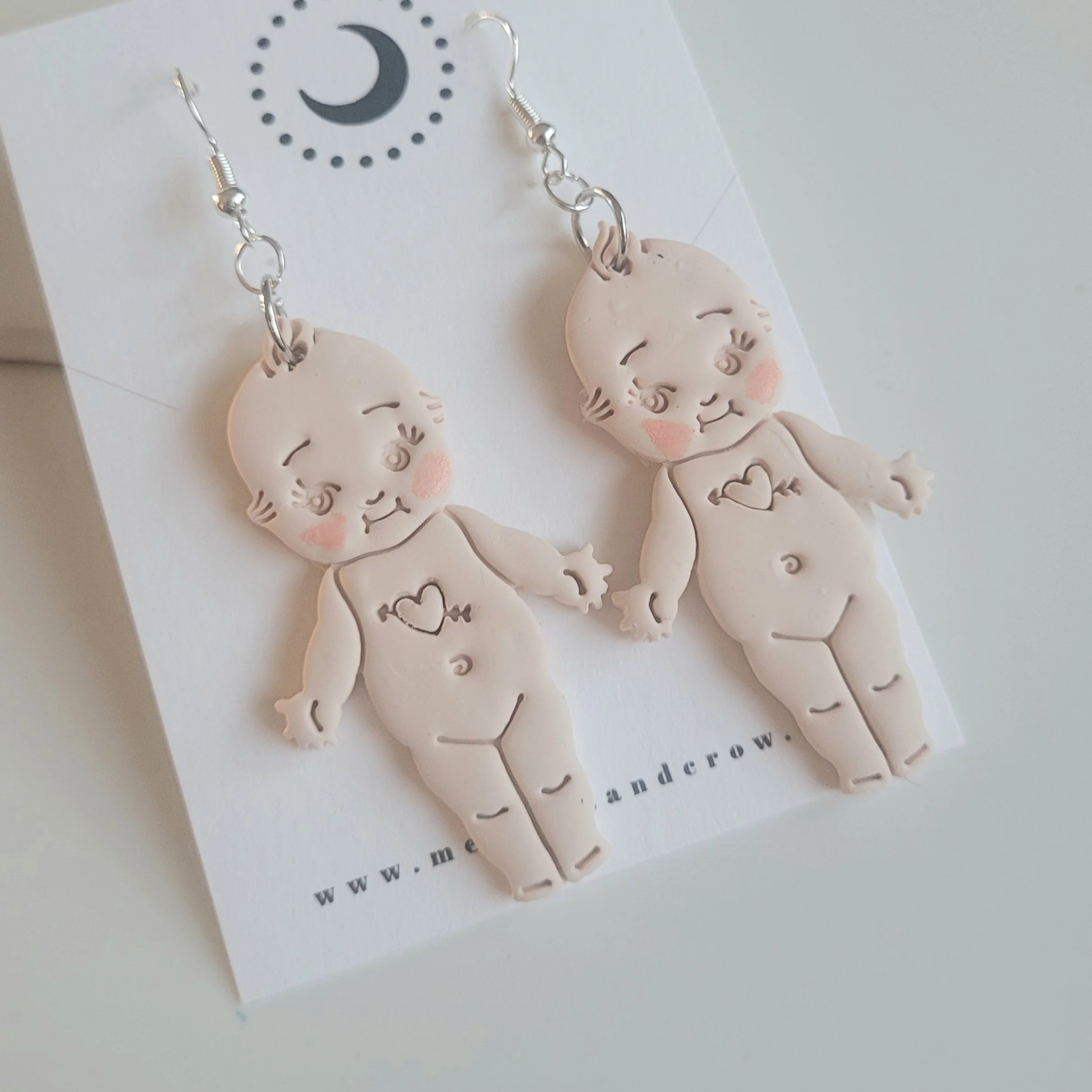 Discover the playful charm of Kitsch Baby Doll Tattoo earrings at Meia-Lua and Crow. These unique accessories blend the nostalgic appeal of classic Kitsch Baby Dolls with bold tattoo-inspired designs, creating a standout piece that's both whimsical and edgy. Handcrafted with attention to detail, our tattoo Kitsch Baby Doll earrings add a distinctive touch to any outfit. Explore our collection today and embrace the perfect mix of vintage innocence and modern artistry.